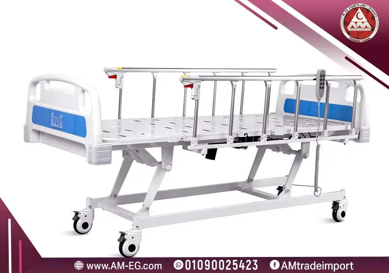 سرير عناية مركزة كهربائي 5 حركات بالريموت، مع مرتبة إسفنجية بجلد مقوى وحامل محاليل، شاسيه معدني يتحمل الأوزان، مستورد بالكامل من الصين – ماركة Saikang الأصلية، نحن الوكيل المعتمد.